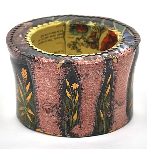 Column bracelet height 2 1/2". This bracelet is easy to wear since it doesn't extend out very far from the wrist, yet the column cuff design offers a lot of dramatic impact.