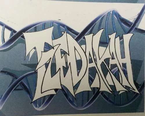 Tzedakah Side 2 - graffiti on I.Magnin & Co building